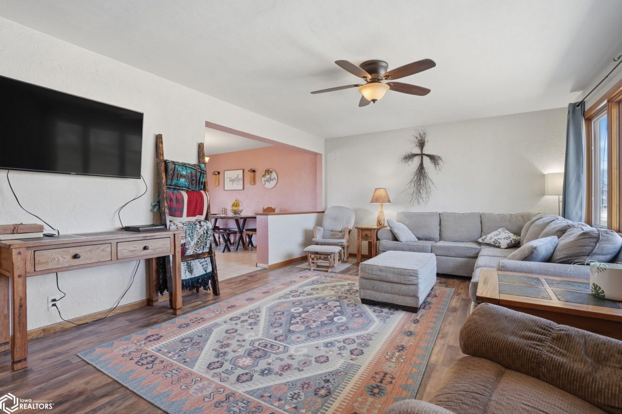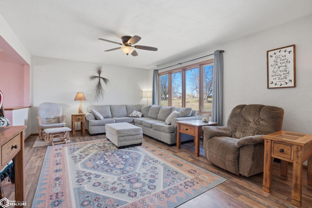 Over 2,000 finished sq. ft. of country living on 3 acres right inside Lockridge city limits and just a short drive to Mount Pleasant or Fairfield! This spacious home features a bright, large eat-in kitchen perfect for family meals, a roomy living area filled with natural light, and three main-floor bedrooms, including a newly remodeled bathroom. The lower level adds even more versatility with a fourth bedroom, additional bath, rec room, office space, ample storage, and a large laundry area, ideal for families needing extra space. French patio doors open up to ¾ acre of fenced yard with multiple access gates, a covered deck with sun awning, and established trees. A perfect mix of modern updates, functional space, and country charm!