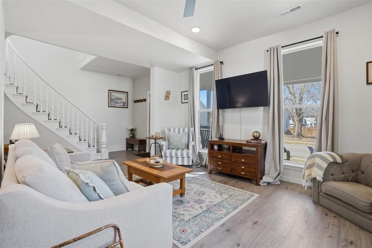 Character and charm meets modern amenities in this spacious 4 bedroom, 2 bathroom home! With updates throughout that go beyond cosmetics, this is a truly unique property. The inviting front porch welcomes you to the grand foyer entrance with an eye catching painted staircase. Expansive windows flood the main level with natural light. A functional kitchen with white cabinetry, stainless steel appliances and a striking tile backsplash. Expansive dining space conveniently connected to the kitchen. A main level bedroom and full bathroom completes the well thought out main level. Upstairs you find 3 bedrooms with great closet space and another full bathroom. Conveniently located on the upper level is the laundry room. The fenced in yard creates the perfect retreat to enjoy on your back porch or poured concrete patio area. A spacious detached two-car garage completes this stylish, spacious, and functional home. Located just seconds from Washington's historic downtown square, you are close to many of the amenities Washington offers. Don't miss your chance to see this one today!